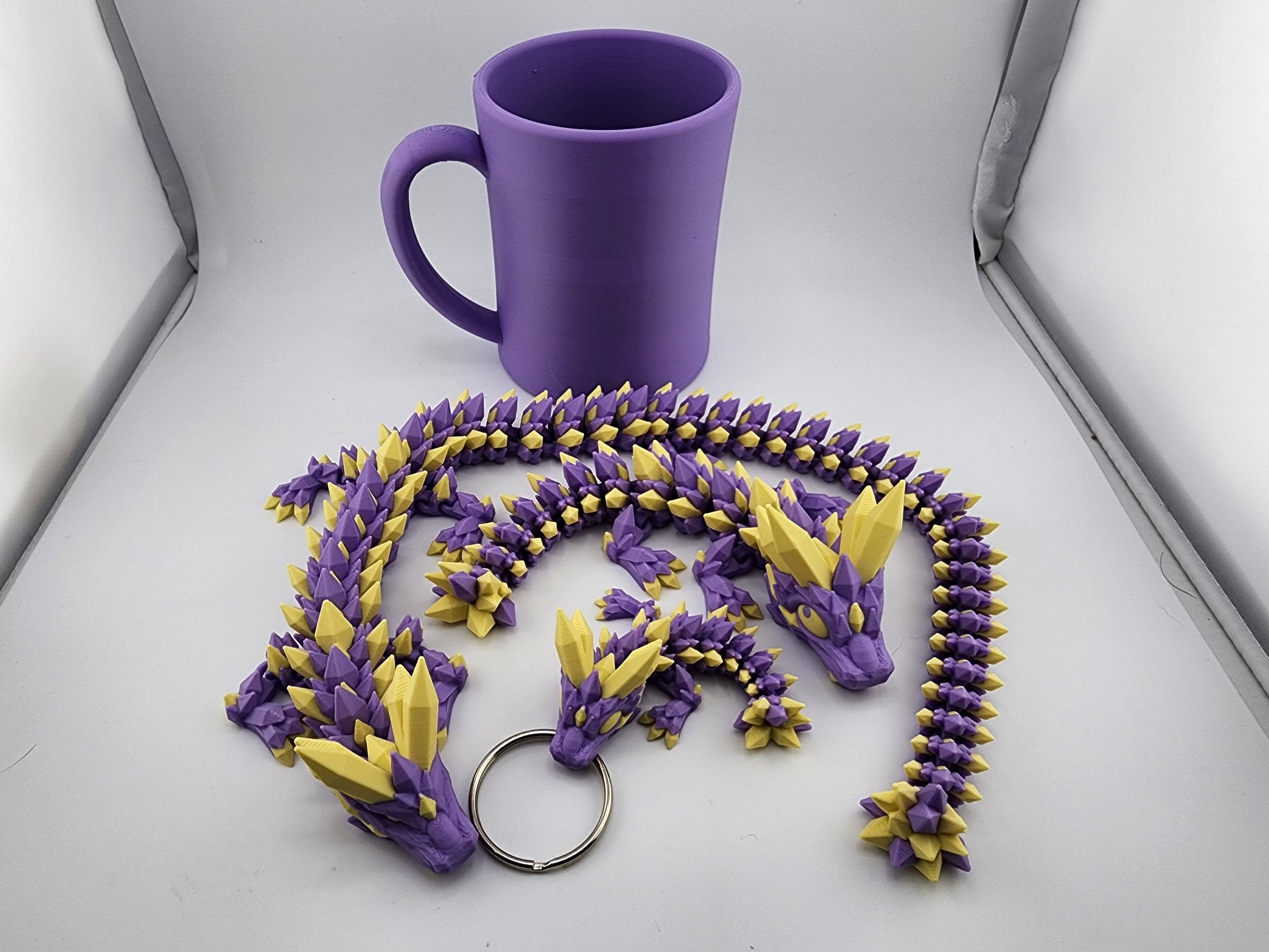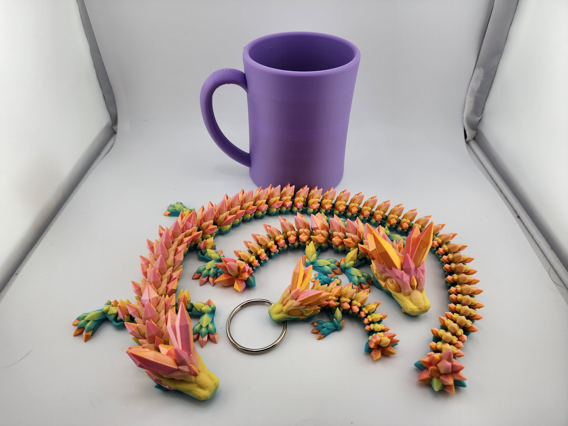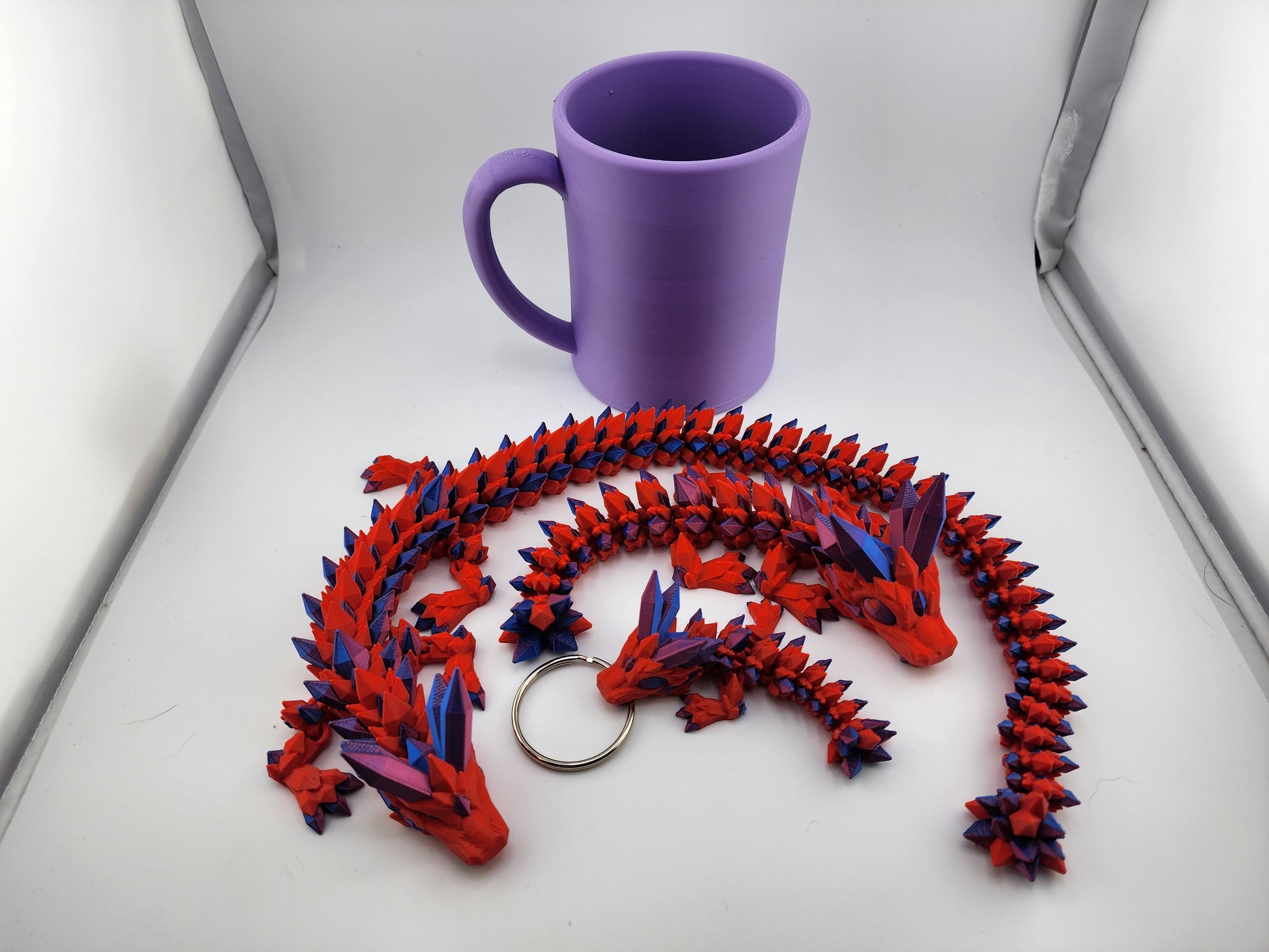 The Two Tone Cinderwing Crystal Dragon Sets present an exquisite collection featuring a 20" parent dragon, an 8" baby dragon, and a 4" keychain. Crafted with vibrant, two-tone hues, each dragon highlights detailed crystal-like textures and carefully sculpted features. This expertly designed set combines scale, color contrast, and artistry to appeal to collectors seeking both display-worthy pieces and a charming, portable accessory.
